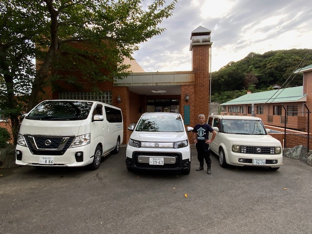 中央にフリード✨ 活躍中の日産キャラバンも一緒に📸 洗車を手伝ってくれる職員さんも📸